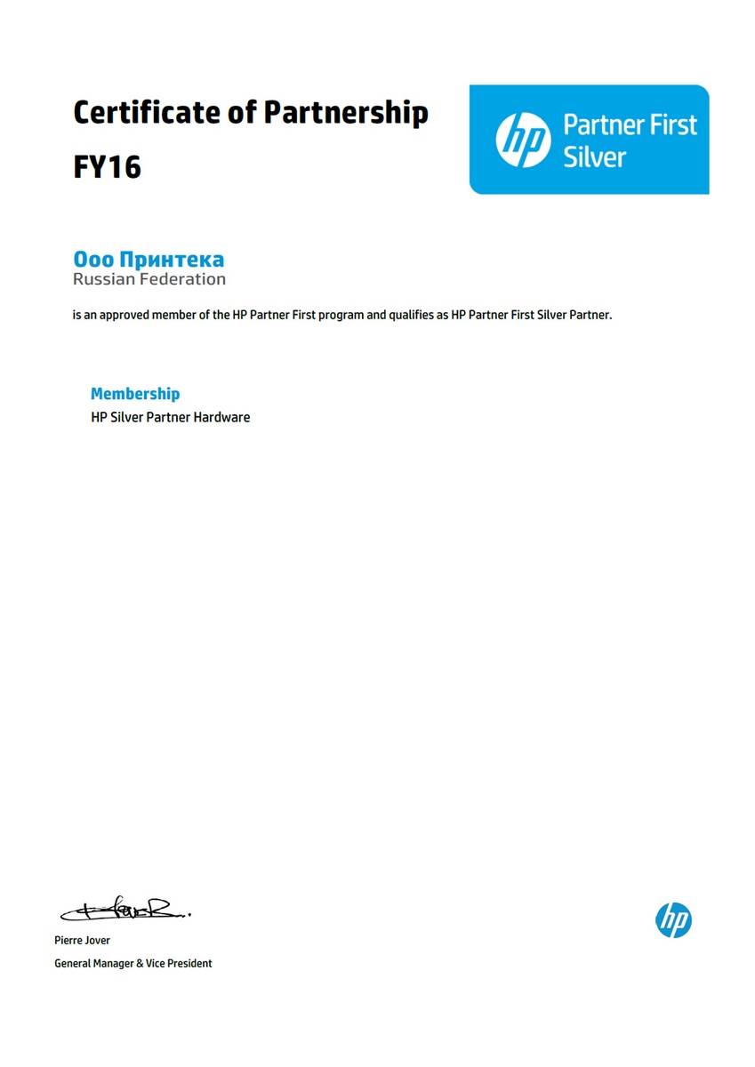 Список сертификатов Принтер-Плоттер.ру обновлен — магазин вновь подтвердил свой статус официального дилера HP и получил обновленный сертификат на новый отчетный период.