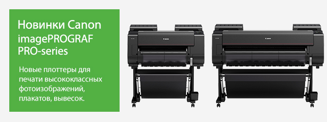 Компания Canon расширила серию принтеров imagePROGRAF PRO четырьмя новыми моделями: 11-ти цветным 44-дюймовым imagePROGRAF PRO-4000 и 24-дюймовым imagePROGRAF PRO-2000, предназначенными для печати высококлассных фотоизображений, а также 8-цветными 60-дюймовым imagePROGRAF PRO-6000S и 44-дюймовым imagePROGRAF PRO-4000S для создания плакатов и вывесок.