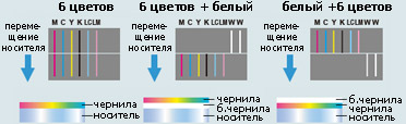 Полноцветная печать белыми чернилами по прозрачным и цветным носителям