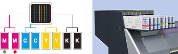 Система непрерывной подачи чернил (Uninterrupted Ink Supply System) позволяет осуществлять непрерывную работу плоттер-каттера Mimaki CJV30 вплоть до следующего рабочего дня. Когда заканчивается один чернильный картридж, чернила автоматически начинает подавать другой. Чернильные картриджи можно менять в процессе печати. Систему непрерывной подачи чернил UISS можно использовать в 4-х цветном режиме печати.
