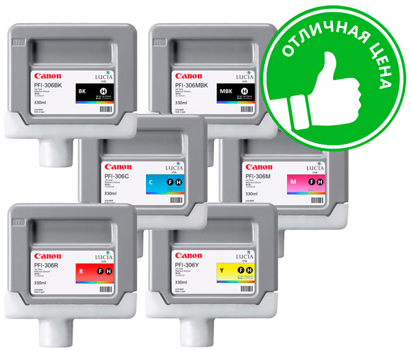Комплект картриджей Canon PFI-306 (MBK,BK,M,C,Y,R) 6 шт х 330 мл
