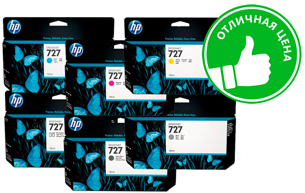 Еще нет отзывов о продукте Комплект картриджей HP 727 (C,M,Y,pK,mK,G) 6 шт x 130 млВаше мнение о продукте