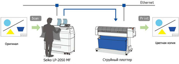 Инженерные системы Seiko LP-1030 MF-1R, LP-1030 MF-2R, LP-2050 MF-4R оснащены цветными сканерами (в случае LP-2050 MF-4R эта возможность является опциональной и появляется после введения кода активации). Возможность цветного сканирования можно использовать не только для получения электронных файлов в цвете, но и для прямого копирования цветных документов на цветные струйные плоттеры.