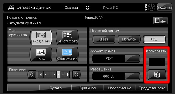 Управление процессом копирования производится с панели инженерной системы и не требует привлечения дополнительного компьютера. На панели задаются установки сканирования, относящиеся к качеству оригинала, а также режим копирования (быстрое, стандартное, повышенное качество).