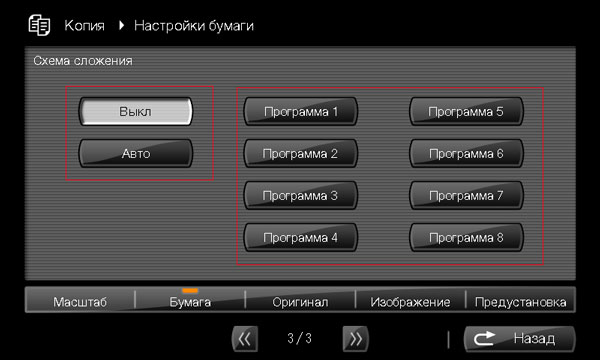 Если заказчик работает с рулонами, например, 620 мм шириной, то в аппарате включается пользовательская серия размеров, содержащая такой размер. В результате копирование документов будет производится без обрезки и сдвигов.
