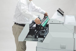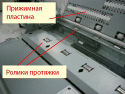 Для протяжки оригиналов используются парные металлические ролики с насечками. Такие ролики в отличие от резиновых совершенно не изнашиваются, не требуют замены, подача оригиналов не ухудшается со временем эксплуатации аппарата.